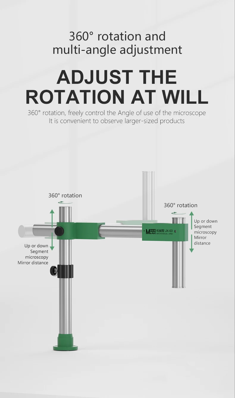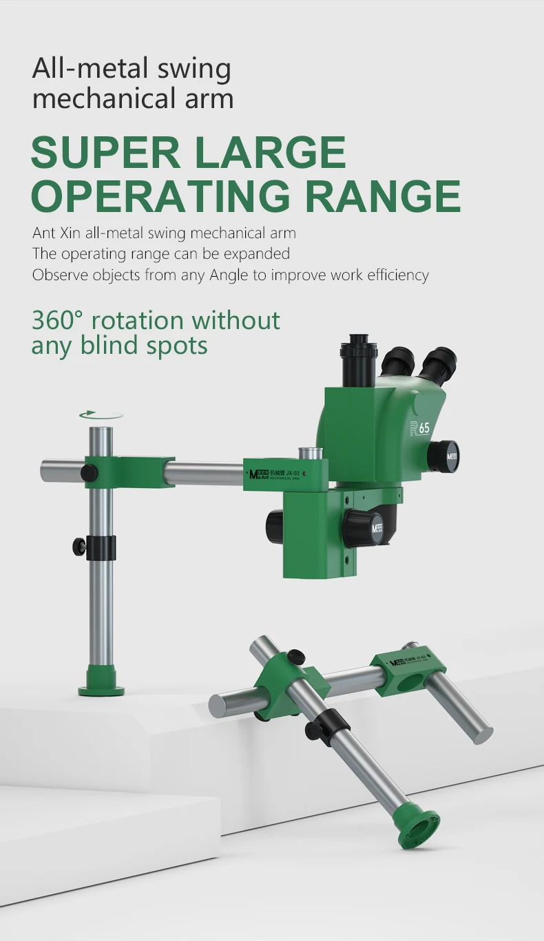 MAANT Microscope Mechanic JX-03 360° free rotating universal arm bracket .Aviation Aluminum, smooth swing, smooth turns, and stable center of gravity, perfectly adapted to binocular/trinocular stereo microscopes.